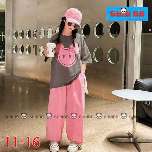 A491559 - Bộ thun thích hợp cho cả trai và gái áo tay ngắn phối cùng quần dài suông hoạ tiết tổng hợ