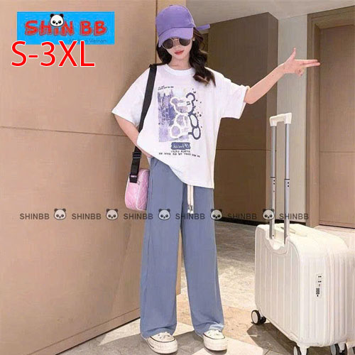 A491561 - Bộ thun thích hợp cho cả trai và gái áo tay ngắn phối cùng quần dài suông hoạ tiết tổng hợ