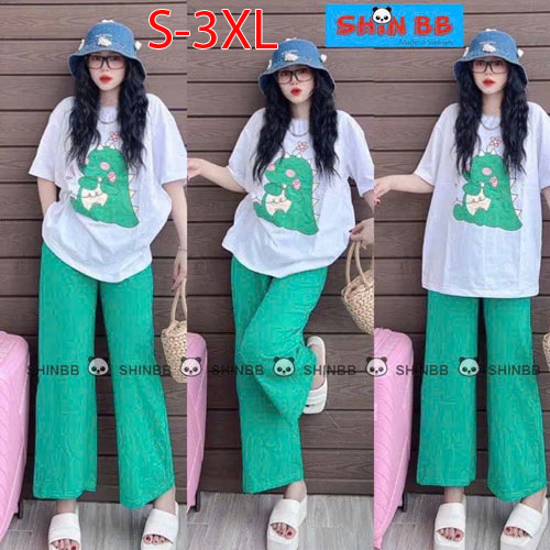 A491562 - Bộ thun thích hợp cho cả trai và gái áo tay ngắn phối cùng quần dài suông hoạ tiết tổng hợ