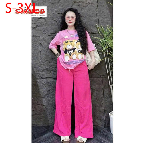 A491563 - Bộ thun thích hợp cho cả trai và gái áo tay ngắn phối cùng quần dài suông hoạ tiết tổng hợ