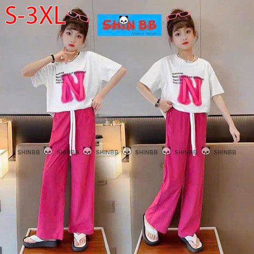 A491573 - Bộ thun thích hợp cho cả trai và gái áo tay ngắn phối cùng quần dài suông hoạ tiết tổng hợ