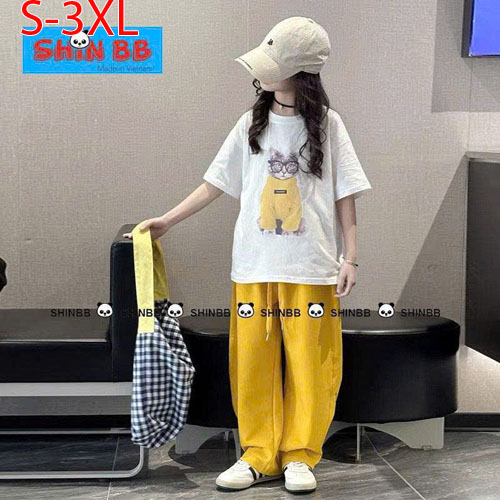 A491574 - Bộ thun thích hợp cho cả trai và gái áo tay ngắn phối cùng quần dài suông hoạ tiết tổng hợ