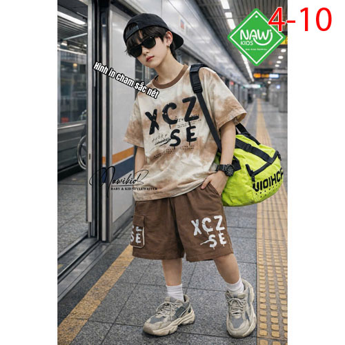 A497890 - Set bộ bé trai in loang cổ viền màu thun cotton 4c quần thun cotton 1 bên túi hộp đáy túi