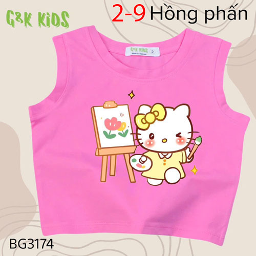 A500632 - Áo sát nách bé gái chất thun coton 4c in Kitty_Size 2-9