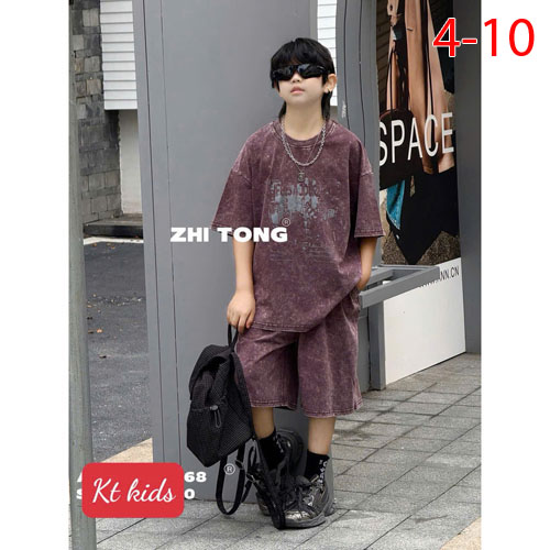 A501251 - Bộ thun Wash đá siêu ngầu siêu cá tính cho bé trai thun cotton co giãn 4c_Size 4-10