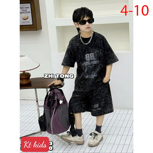 A501253 - Bộ thun Wash đá siêu ngầu siêu cá tính cho bé trai thun cotton co giãn 4c_Size 4-10