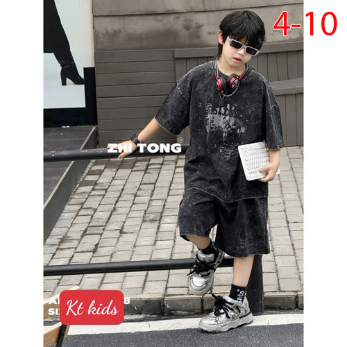 A501255 - Bộ thun Wash đá siêu ngầu siêu cá tính cho bé trai thun cotton co giãn 4c_Size 4-10