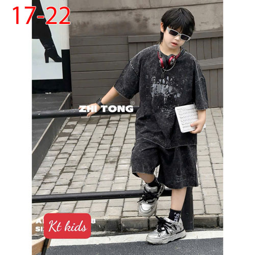A501262 - Bộ thun Wash đá siêu ngầu siêu cá tính cho bé trai thun cotton co giãn 4c_Size 17-22