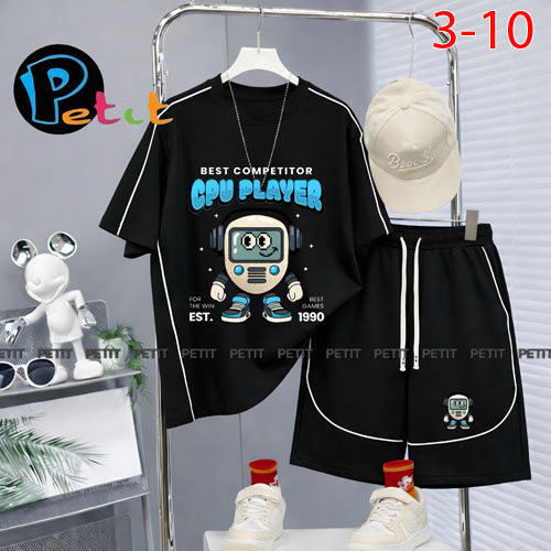 A502217 - Set bé trai viền lé phong cách thể thao năng động thun cotton in tổng hợp_Size 3-10