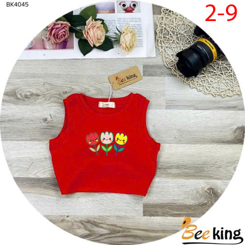 A502501 - Áo bé gái croptop hoa tulip chất liệu borip loại 1_Size 2-9