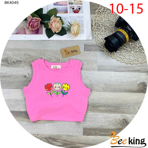 A502508 - Áo bé gái croptop hoa tulip chất liệu borip loại 1_Size 10-15