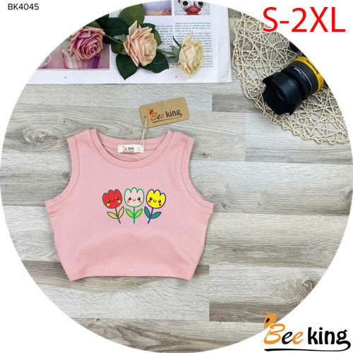 A502514 - Áo bé gái croptop hoa tulip chất liệu borip loại 1_Size S-2XL