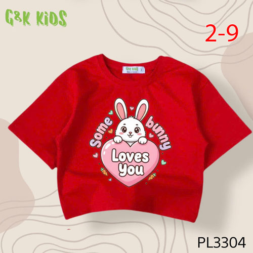 A504529 - Áo bé gái phom lững chất thun coton 4c in thỏ trái tim LOVES YOU_Size 2-9