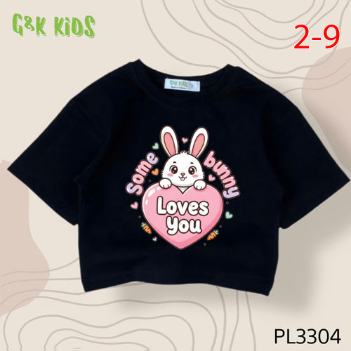 A504533 - Áo bé gái phom lững chất thun coton 4c in thỏ trái tim LOVES YOU_Size 2-9