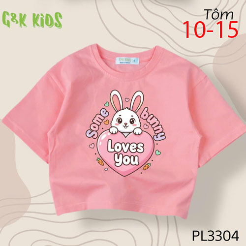A504537 - Áo bé gái phom lững chất thun coton 4c in thỏ trái tim LOVES YOU_Size 10-15