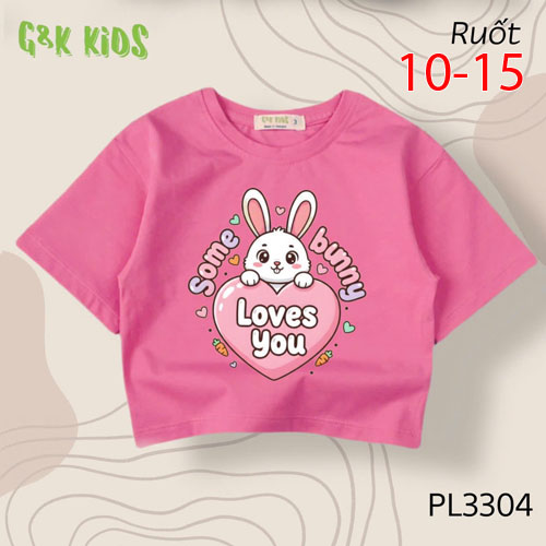 A504545 - Áo bé gái phom lững chất thun coton 4c in thỏ trái tim LOVES YOU_Size 10-15