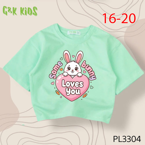 A504549 - Áo bé gái phom lững chất thun coton 4c in thỏ trái tim LOVES YOU_Size 16-20