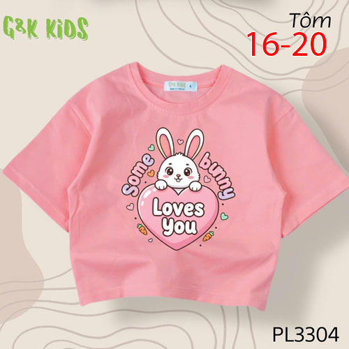 A504550 - Áo bé gái phom lững chất thun coton 4c in thỏ trái tim LOVES YOU_Size 16-20