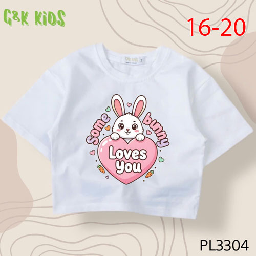 A504557 - Áo bé gái phom lững chất thun coton 4c in thỏ trái tim LOVES YOU_Size 16-20