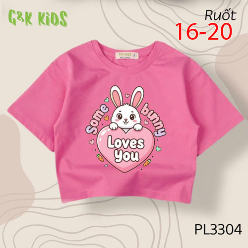 A504558 - Áo bé gái phom lững chất thun coton 4c in thỏ trái tim LOVES YOU_Size 16-20
