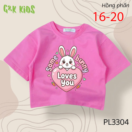 A504559 - Áo bé gái phom lững chất thun coton 4c in thỏ trái tim LOVES YOU_Size 16-20