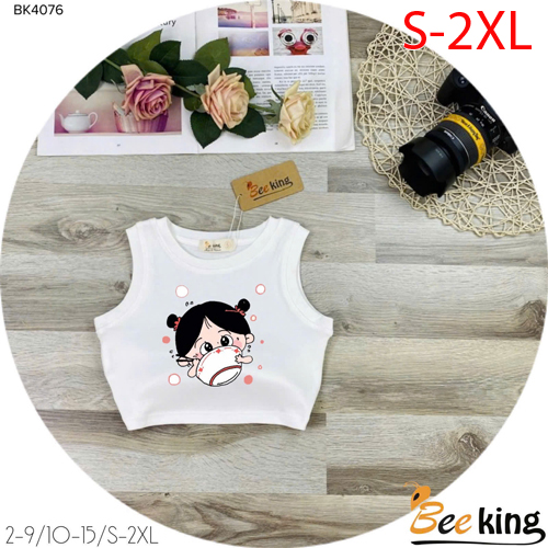 A504794 - Áo bé gái croptop cô gái ăn cơm chất liệu borip loại 1_Size S-2XL