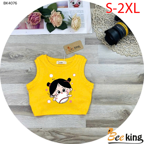 A504795 - Áo bé gái croptop cô gái ăn cơm chất liệu borip loại 1_Size S-2XL