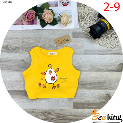 A505201 - Áo bé gái croptop Be happy chất liệu borip loại 1_Size 2-9
