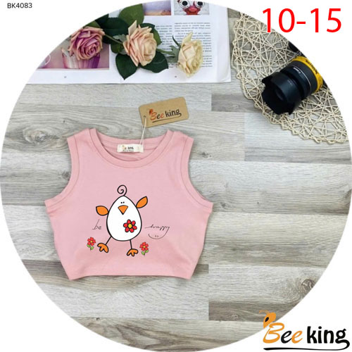A505205 - Áo bé gái croptop Be happy chất liệu borip loại 1_Size 10-15