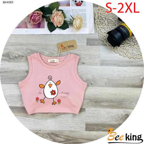 A505214 - Áo bé gái croptop Be happy chất liệu borip loại 1_Size S-2XL