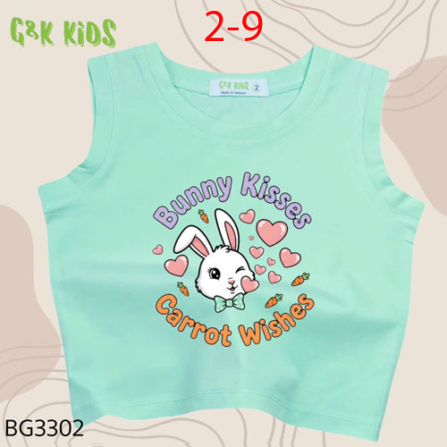 A505632 - Áo sát nách bé gái chất thun coton 4c in thỏ trái tim BUNNY KISSES_Size 2-9