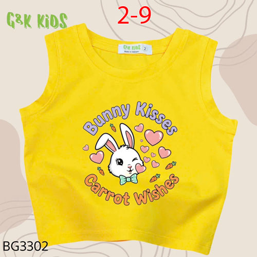 A505633 - Áo sát nách bé gái chất thun coton 4c in thỏ trái tim BUNNY KISSES_Size 2-9