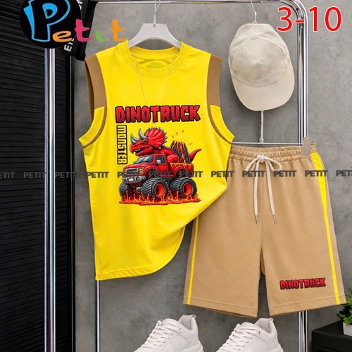 A506446 - Set bé trai sát nách phong cách thể thao phối màu nổi bật in khủng long Shin_Size 3-10