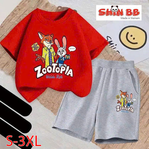 A209254 - Bộ YoYo BT thun cotton 4c in KHỦNG LONG MICKEY Lặn Biển quần đốm chạy 2 sọc_Size 2-9