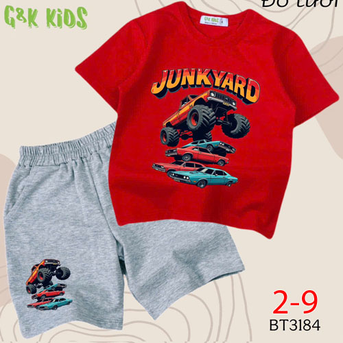 A508087 - Bộ bé trai chất thun coton 4c mềm mịn in xe YUNKYARD_Size 2-9