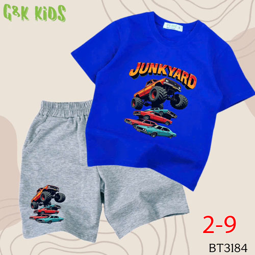 A508091 - Bộ bé trai chất thun coton 4c mềm mịn in xe YUNKYARD_Size 2-9