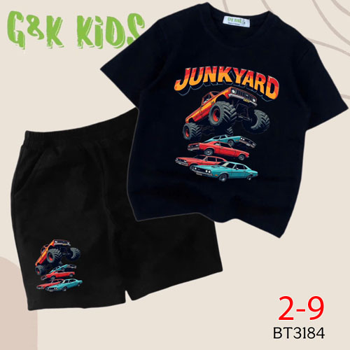 A508092 - Bộ bé trai chất thun coton 4c mềm mịn in xe YUNKYARD_Size 2-9
