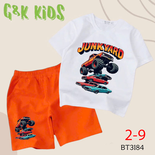 A508094 - Bộ bé trai chất thun coton 4c mềm mịn in xe YUNKYARD_Size 2-9