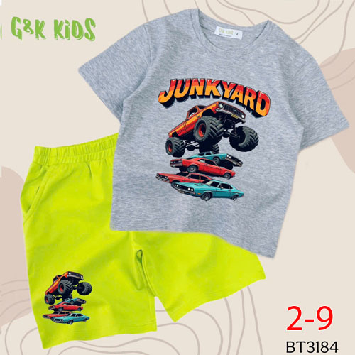 A508098 - Bộ bé trai chất thun coton 4c mềm mịn in xe YUNKYARD_Size 2-9