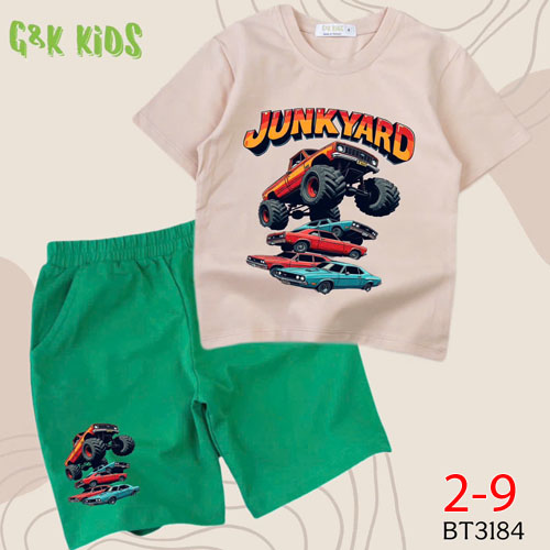 A508099 - Bộ bé trai chất thun coton 4c mềm mịn in xe YUNKYARD_Size 2-9