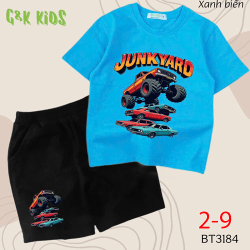 A508100 - Bộ bé trai chất thun coton 4c mềm mịn in xe YUNKYARD_Size 2-9