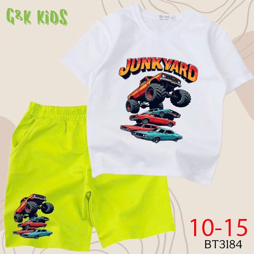 A508104 - Bộ bé trai chất thun coton 4c mềm mịn in xe YUNKYARD_Size 10-15