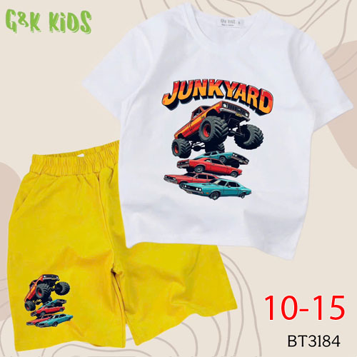 A508106 - Bộ bé trai chất thun coton 4c mềm mịn in xe YUNKYARD_Size 10-15
