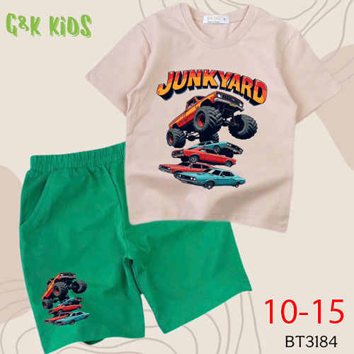 A508108 - Bộ bé trai chất thun coton 4c mềm mịn in xe YUNKYARD_Size 10-15