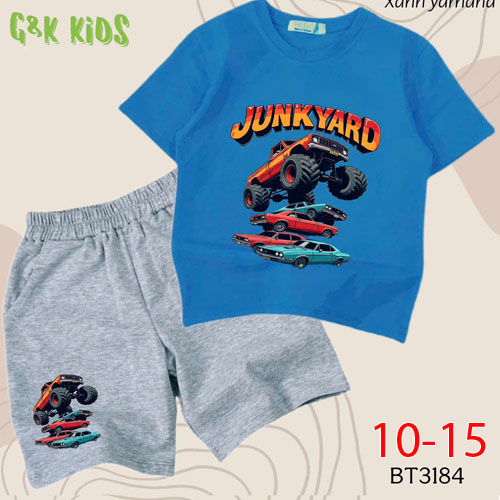 A508114 - Bộ bé trai chất thun coton 4c mềm mịn in xe YUNKYARD_Size 10-15