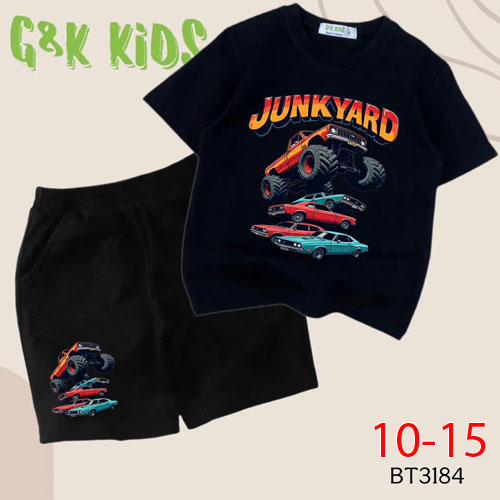 A508115 - Bộ bé trai chất thun coton 4c mềm mịn in xe YUNKYARD_Size 10-15