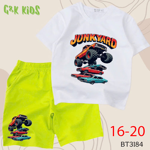 A508123 - Bộ bé trai chất thun coton 4c mềm mịn in xe YUNKYARD_Size 16-20