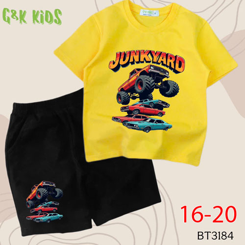 A508124 - Bộ bé trai chất thun coton 4c mềm mịn in xe YUNKYARD_Size 16-20