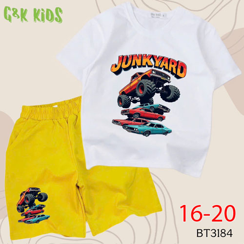 A508125 - Bộ bé trai chất thun coton 4c mềm mịn in xe YUNKYARD_Size 16-20