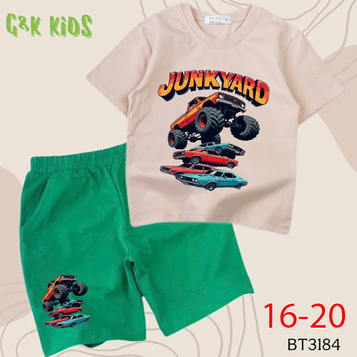 A508127 - Bộ bé trai chất thun coton 4c mềm mịn in xe YUNKYARD_Size 16-20